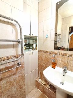 - Сан узел раздельный, в кафеле - продуманы места хранения бытовых принадлежностей и стиральная машина.