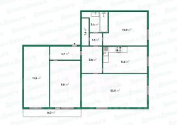 - изолированные комнаты - 22, 13, 11 и 9 кв метра - гостиная с двумя окнами - теплая, светлая - остается диван и стенка.