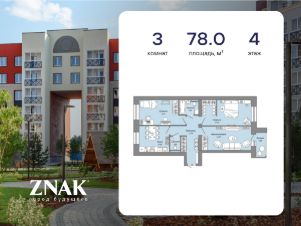 Продается 3-комнатная квартира в 3 км от Зубаревского леса, площадью 78.00 кв. м. Квартира находится в жилом комплексе комфорт-класса ZNAK от девелопера "Железно".