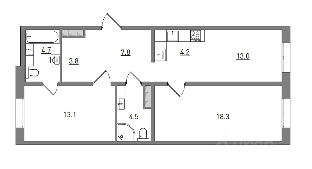 3-комнатная, 69.4 м², 346 по адресу Прибрежный, д. 6 (2 очередь) Тип дома: Утепленная панель. Жилой комплекс "РИВЕР ПАРК"Преимущества покупки квартиры в новостройке напрямую от застройщика КСМ: