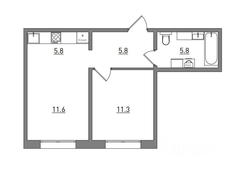 2-комнатная, 40.3 м², 348 по адресу Прибрежный, д. 6 (2 очередь) Тип дома: Утепленная панель. Жилой комплекс "РИВЕР ПАРК"Преимущества покупки квартиры в новостройке напрямую от застройщика КСМ: