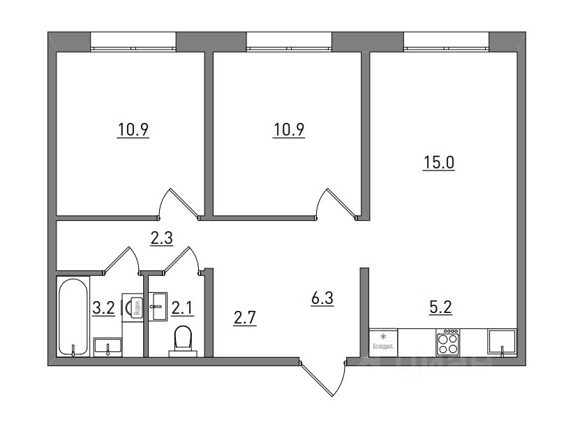 3-комнатная, 59.6 м², 353 по адресу Прибрежный, д. 6 (2 очередь) Тип дома: Утепленная панель. Жилой комплекс "РИВЕР ПАРК"Преимущества покупки квартиры в новостройке напрямую от застройщика КСМ: