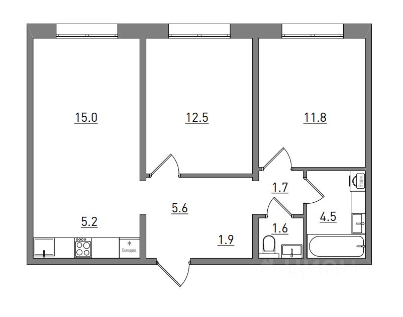 3-комнатная, 59.8 м², 354 по адресу Прибрежный, д. 6 (2 очередь) Тип дома: Утепленная панель. Жилой комплекс "РИВЕР ПАРК"Преимущества покупки квартиры в новостройке напрямую от застройщика КСМ: