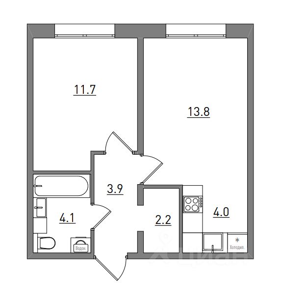 2-комнатная, 39.7 м², 518 по адресу Прибрежный, д. 6 (2 очередь) Тип дома: Утепленная панель. Жилой комплекс "РИВЕР ПАРК"Преимущества покупки квартиры в новостройке напрямую от застройщика КСМ: