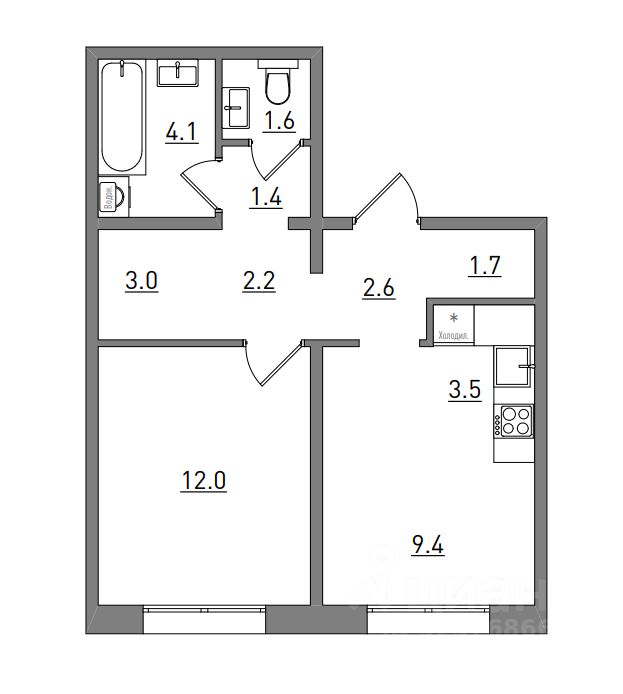 2-комнатная, 41.5 м², 525 по адресу Прибрежный, д. 6 (2 очередь) Тип дома: Утепленная панель. Жилой комплекс "РИВЕР ПАРК"Преимущества покупки квартиры в новостройке напрямую от застройщика КСМ: