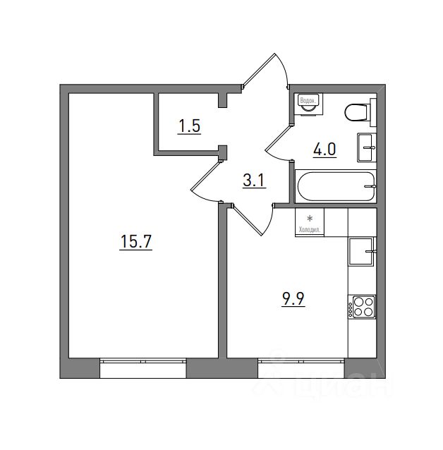 1-комнатная, 34.2 м², 613 по адресу Прибрежный, д. 6 (2 очередь) Тип дома: Утепленная панель. Жилой комплекс "РИВЕР ПАРК"Преимущества покупки квартиры в новостройке напрямую от застройщика КСМ: