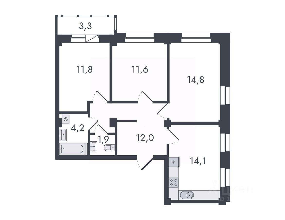 3-комнатная, 73.7 м², 349 по адресу Чистопрудненская, д. 13 Тип дома: Каркас/кирпич. Микрорайон "Чистые пруды"Преимущества покупки квартиры в новостройке напрямую от застройщика КСМ: