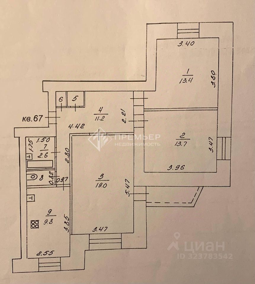 - Три изолированные комнаты (19кв м, 14кв м, 14кв м)