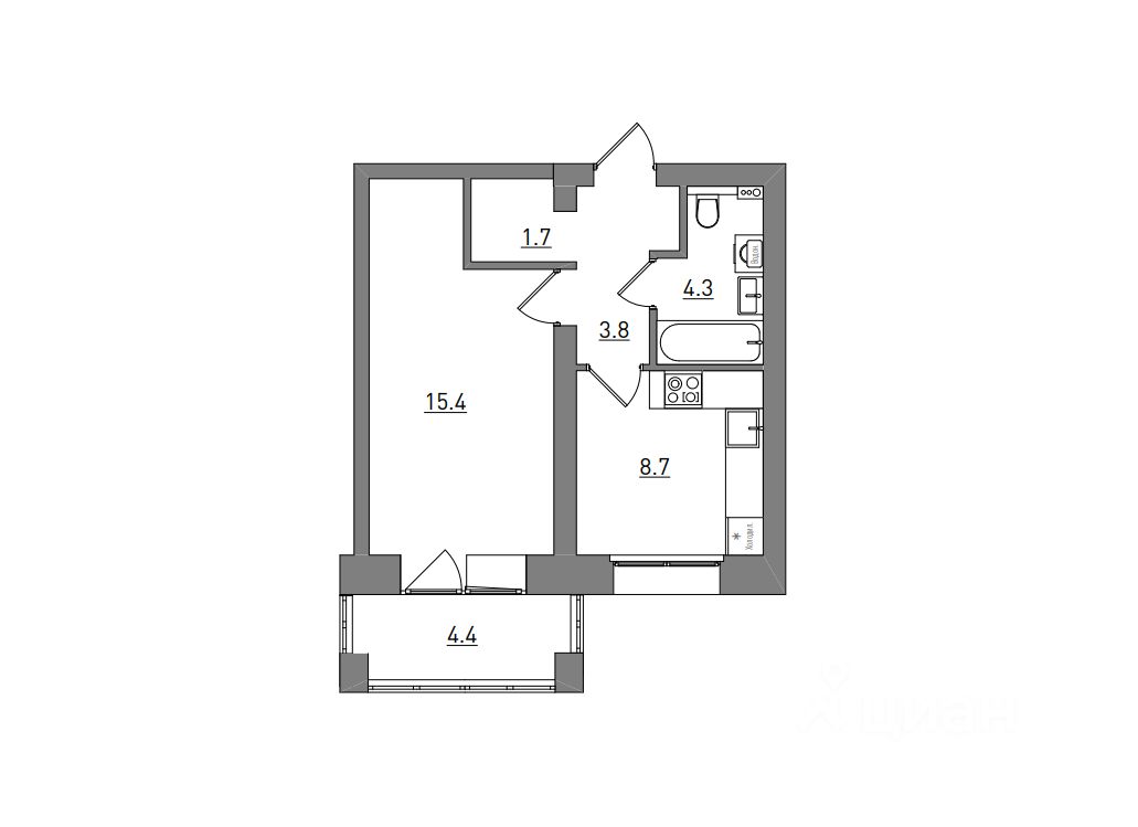 1-комнатная, 38.3 м², 59 по адресу Парковая, д.1В Тип дома: Кирпич. Жилой комплекс "Сити Парк"Преимущества покупки квартиры в новостройке напрямую от застройщика КСМ:
