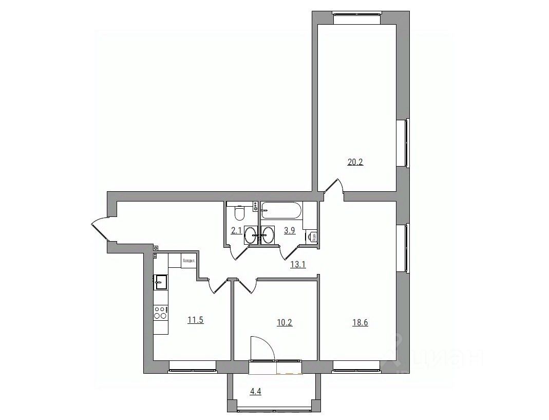 3-комнатная, 84 м², 101 по адресу Парковая, 1б Тип дома: Кирпич. Жилой комплекс "Сити Парк"Преимущества покупки квартиры в новостройке напрямую от застройщика КСМ: