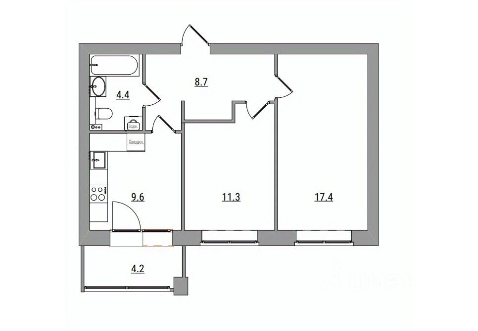 2-комнатная, 55.6 м², 76 по адресу Парковая, 1б Тип дома: Кирпич. Жилой комплекс "Сити Парк"Преимущества покупки квартиры в новостройке напрямую от застройщика КСМ:
