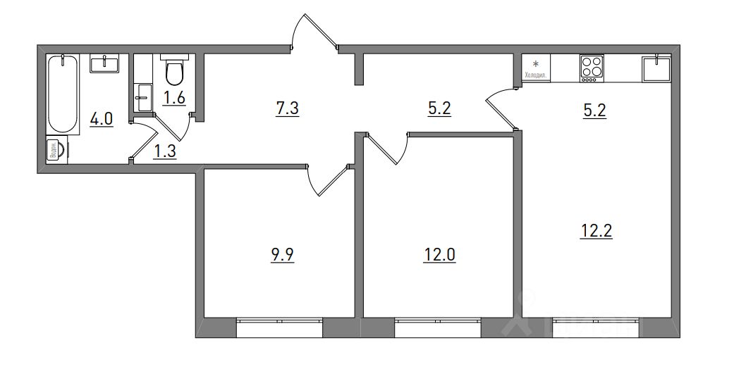 3-комнатная, 58.7 м², 611 по адресу Прибрежный, д. 6 (2 очередь) Тип дома: Утепленная панель. Жилой комплекс "РИВЕР ПАРК"Преимущества покупки квартиры в новостройке напрямую от застройщика КСМ: