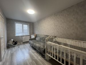 Квартира расположена на среднем третьем этаже, не угловая, очень теплая, окна выходят во двор, очень тихо. Планировка включает в себя две смежные комнаты, небольшую, но функциональную кухню, совмещенный санузел, в спальне есть вместительная кладовка (гардеробная), а также балкон с выходом из гостиной.