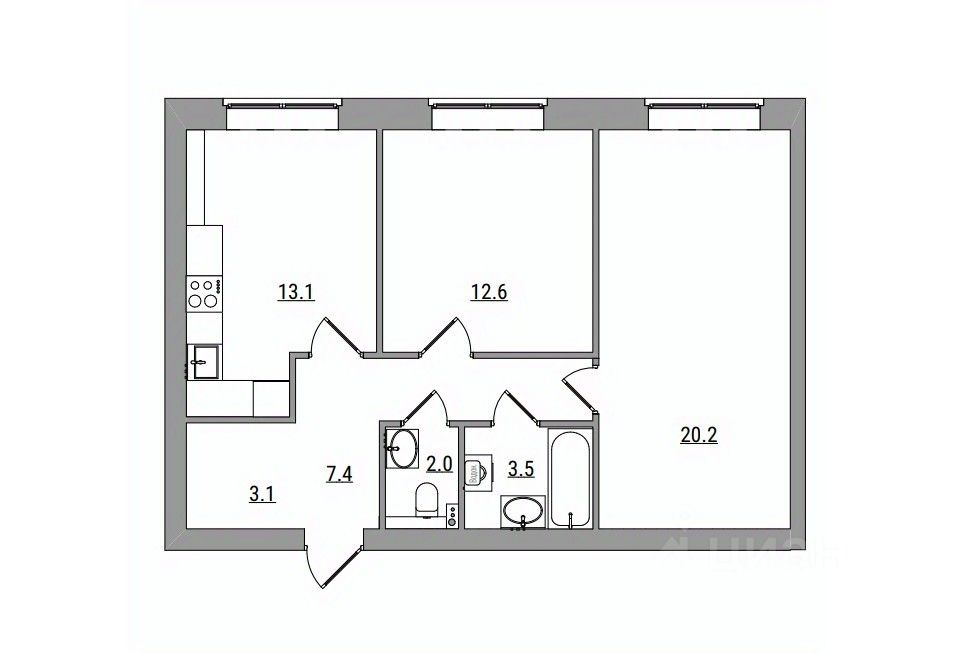 2-комнатная, 61.9 м², 1 по адресу Парковая, 1б Тип дома: Кирпич. Жилой комплекс "Сити Парк"Преимущества покупки квартиры в новостройке напрямую от застройщика КСМ: