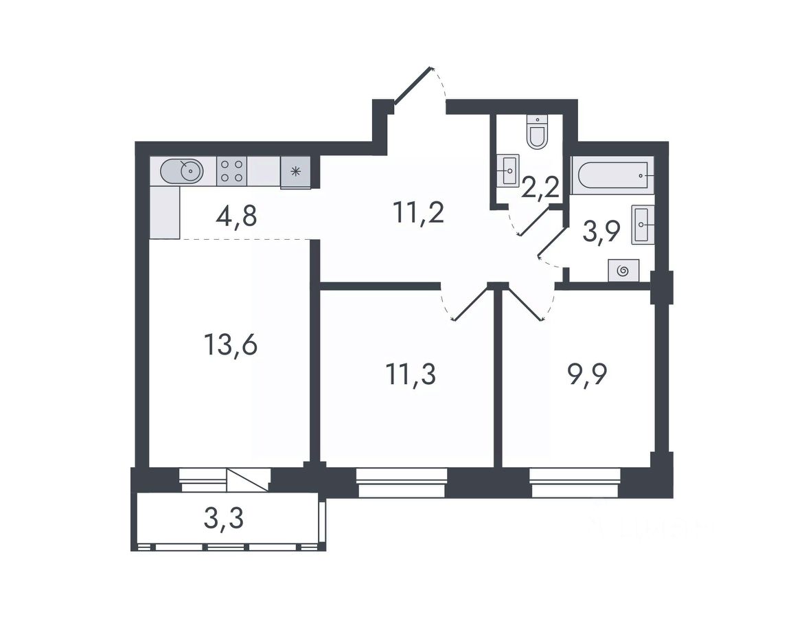 3-комнатная, 60.2 м², 422 по адресу Чистопрудненская, д. 13 Тип дома: Каркас/кирпич. Микрорайон "Чистые пруды"Преимущества покупки квартиры в новостройке напрямую от застройщика КСМ: