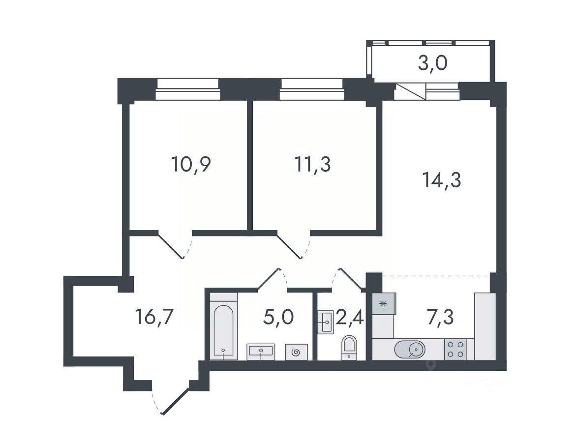 3-комнатная, 70.9 м², 169 по адресу Чистопрудненская, д. 13 Тип дома: Каркас/кирпич. Микрорайон "Чистые пруды"Преимущества покупки квартиры в новостройке напрямую от застройщика КСМ: