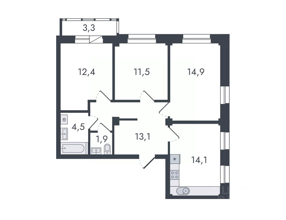 3-комнатная, 75.7 м², 96 по адресу Чистопрудненская, д. 13 Тип дома: Каркас/кирпич. Микрорайон "Чистые пруды"Преимущества покупки квартиры в новостройке напрямую от застройщика КСМ: