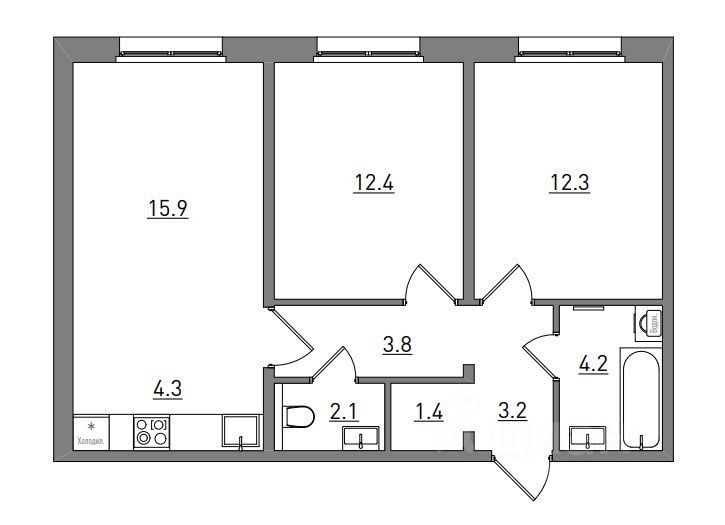 3-комнатная, 59.6 м², 154 по адресу Чистопрудненская, д. 13а Тип дома: Панель. Микрорайон "Чистые пруды"Преимущества покупки квартиры в новостройке напрямую от застройщика КСМ: