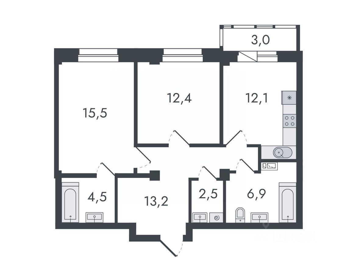 удобная планировка, в квартире никто не жил;