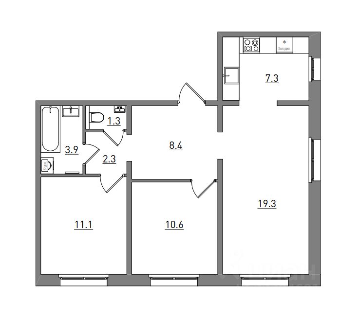 3-комнатная, 64.2 м², 293 по адресу Чистопрудненская, д. 13а Тип дома: Панель. Микрорайон "Чистые пруды"Преимущества покупки квартиры в новостройке напрямую от застройщика КСМ: