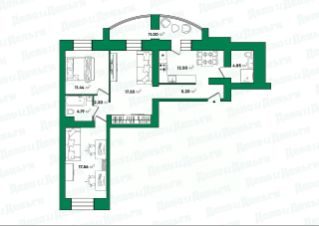 Кухню-гостинную площадью 15 кв.м.,