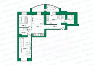 Трехкомнатная квартира в ЖК Айсберг (ул. Розы Люксембург, д.56) площадью 80.62 кв.м.