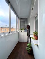 На лоджии проведено освещение. Выполнена чистовая отделка. Выход панорамное остекление.