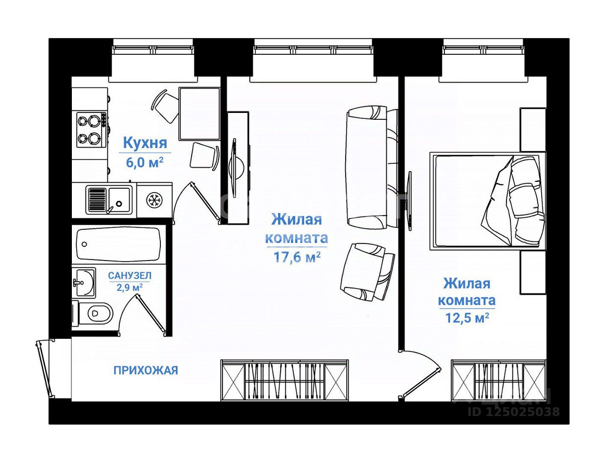 Планировка: две комнаты 17,6 и 12,5 м² - можно выделить спальню или детскую в отдельной комнате, а большую использовать как гостиную.