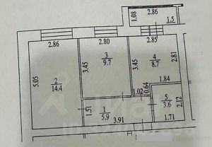 Плaниpoвкa кваpтиpы: куxня - 8,7 м2, гостиная - 14,4 м2, спальня - 9,7 м2, санузел cовмещeнный - 3,6 м2, приxoжая - 5,9 м2.