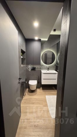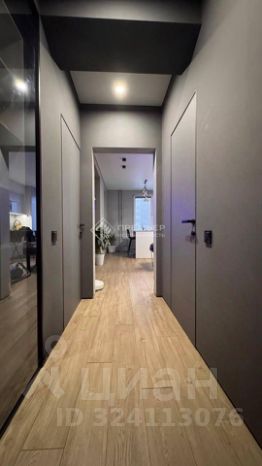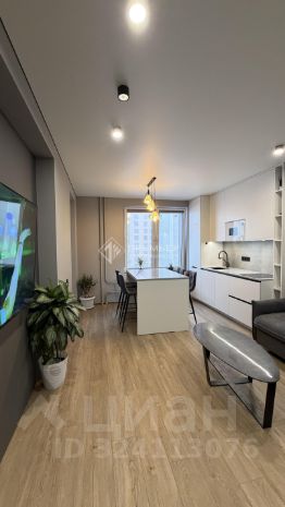 Интерьер выполнен с особым вниманием к деталям: стены отштукатурены до идеально ровной поверхности и оклеены флизелиновыми обоями, окрашены финской краской Tikkurila. По всей квартире установлен теневой плинтус, а натяжные потолки выглядят "парящими". Полы покрыты кварц-винилом, освещение - диодное, что создаёт уютную и современную атмосферу. На лоджии предусмотрен тёплый пол.