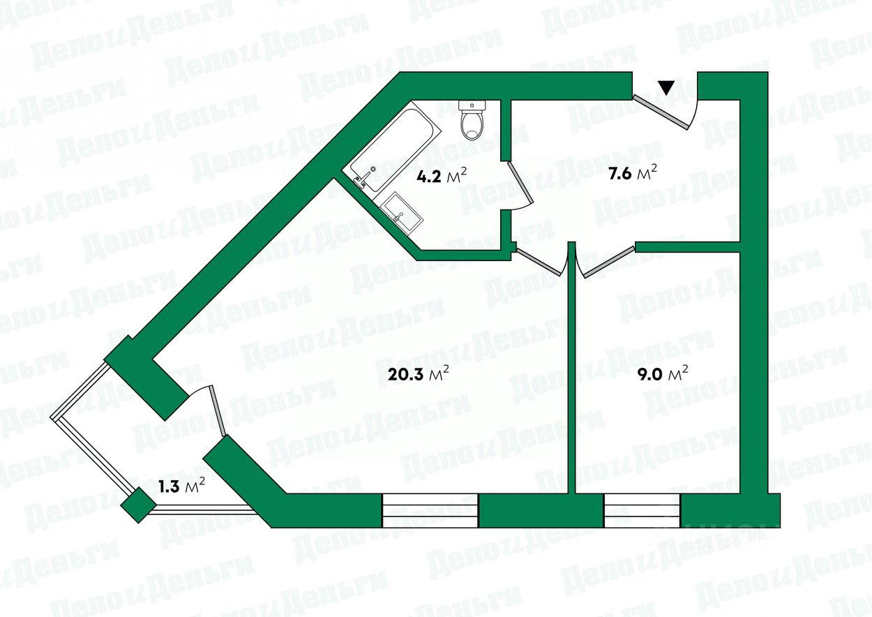 Площадь квартиры 41.1 кв.м. + 1.3 кв.м. застекленная лоджия: