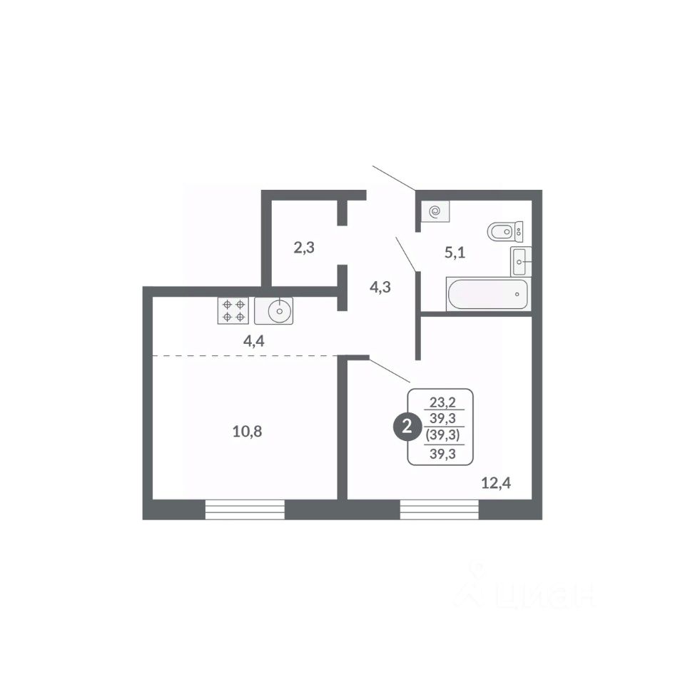 Общая площадь39,3 м²