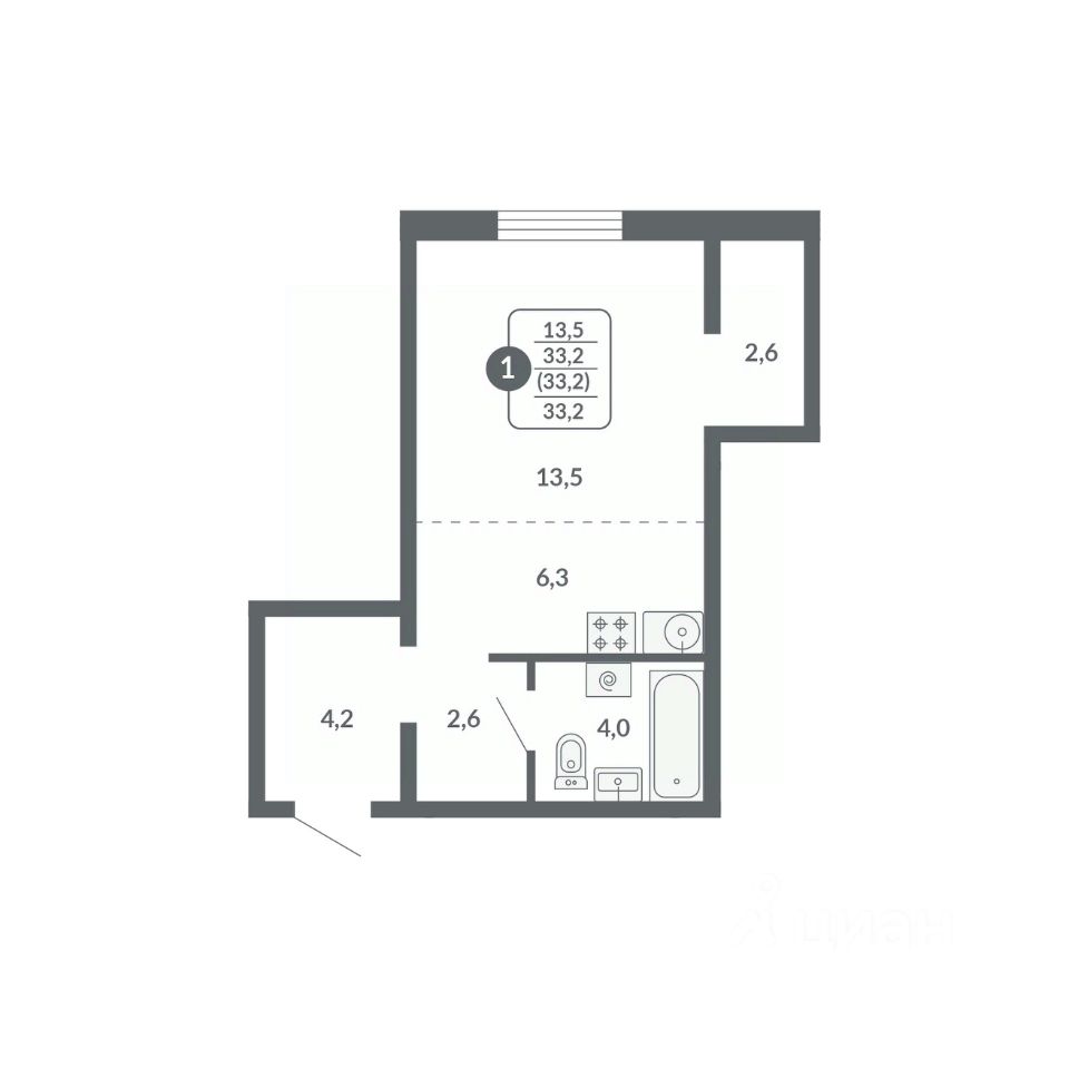 Общая площадь33,2 м²