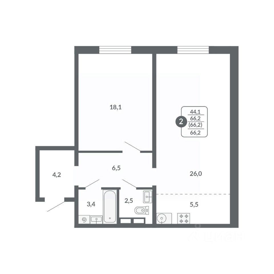 Общая площадь66,2 м²
