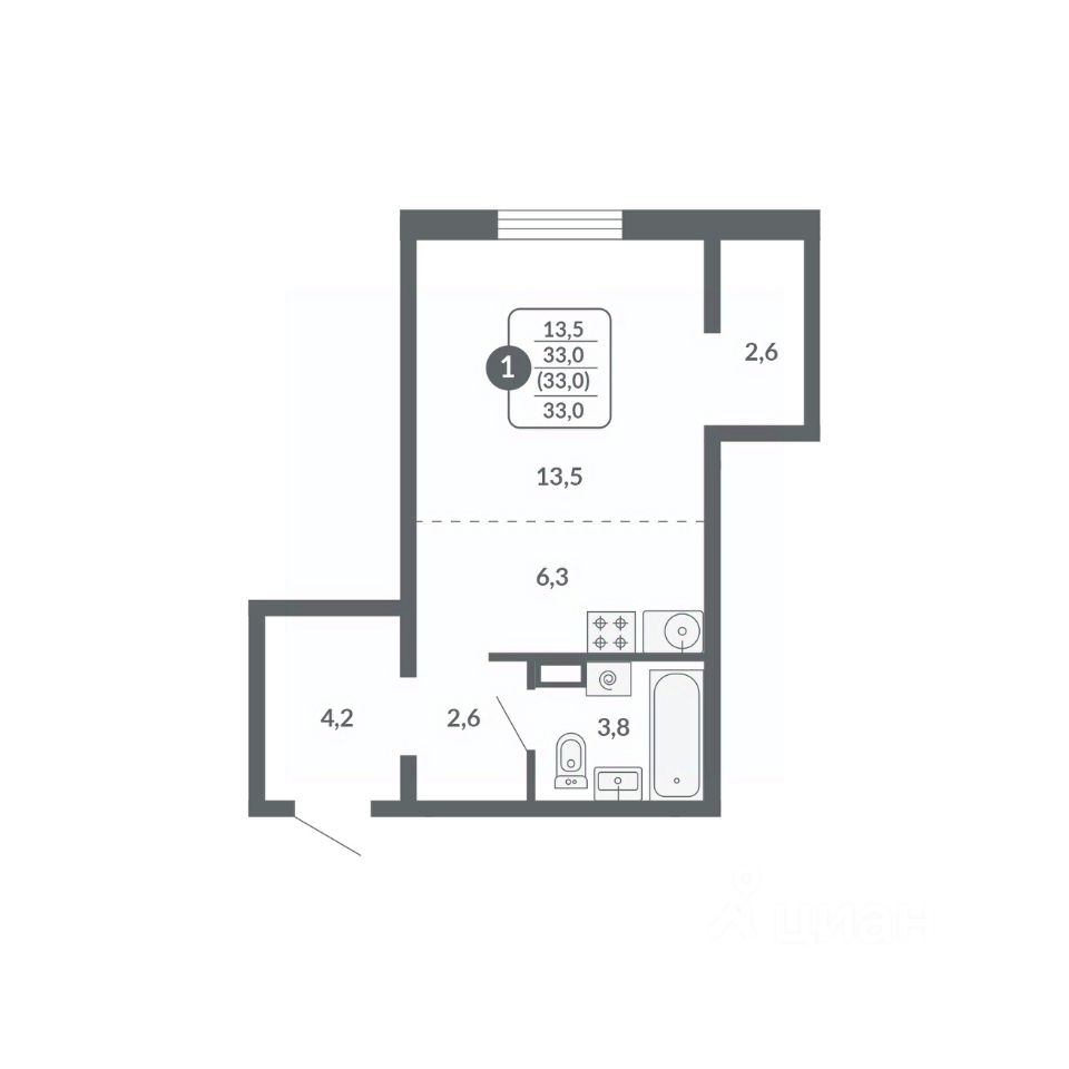 Общая площадь33 м²