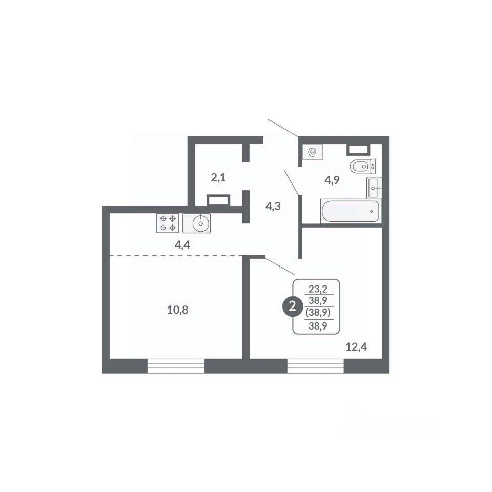 Общая площадь38,9 м²