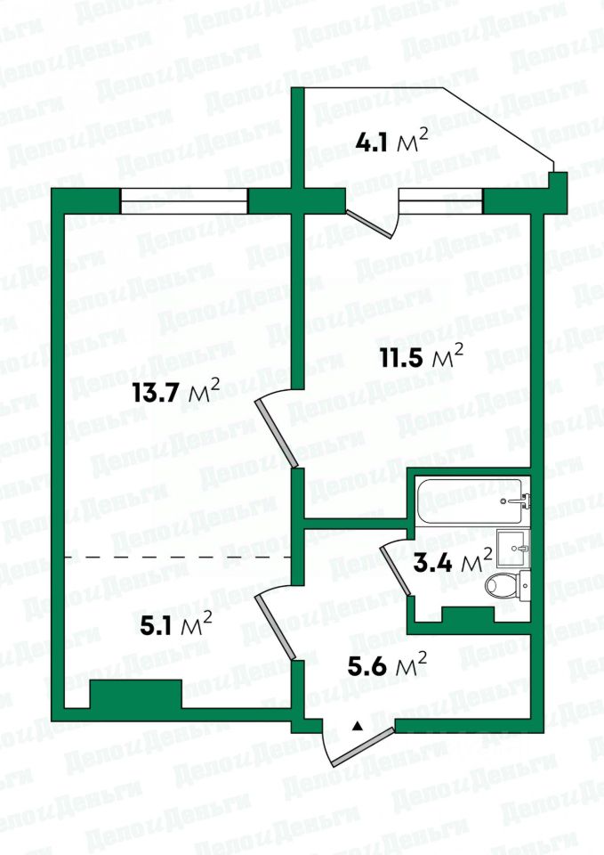 - жилая комната площадью 13,5 кв.м и 11,6 кв. м