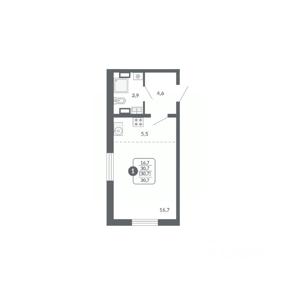 Общая площадь30,7 м²