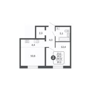 39,3 м²