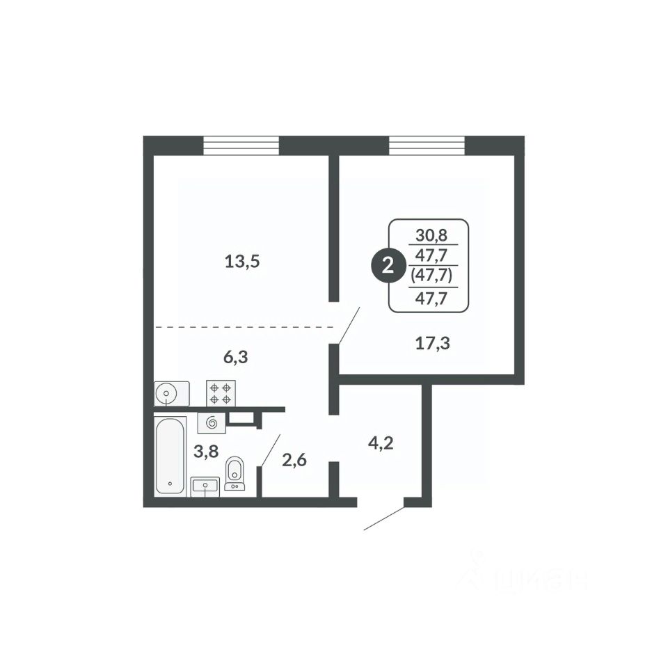 47,7 м²