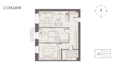 Вашему вниманию предлагается 2-комнатная квартира 95 площадью 57,2 квадратных метров на 8 этаже. Сдача дома - 3 квартал 2027
