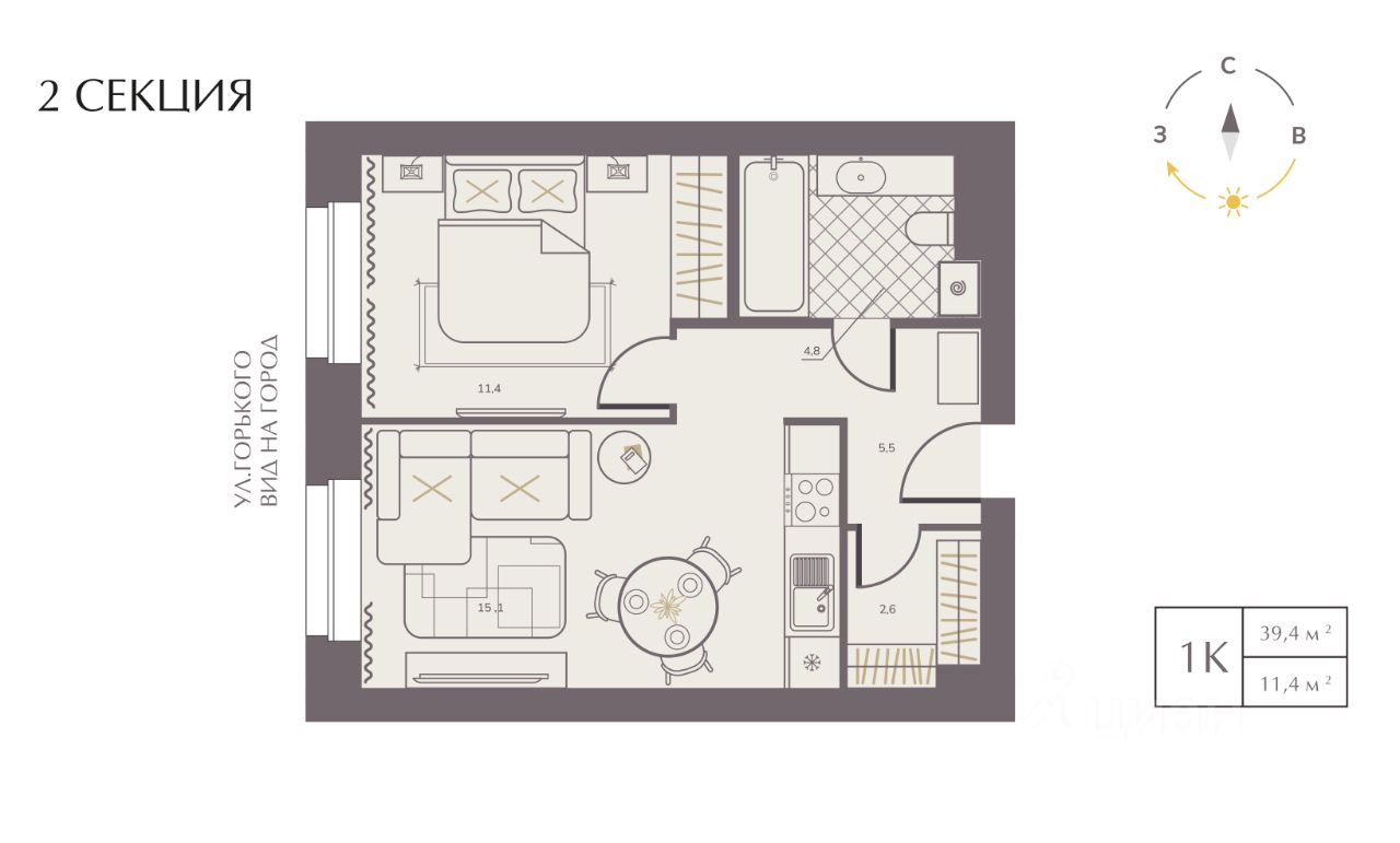 Видовые квартиры на парк с панорамными окнами и потолками высотой до 3,2 метра. Окна на восток и запад — для красивых закатов и рассветов.