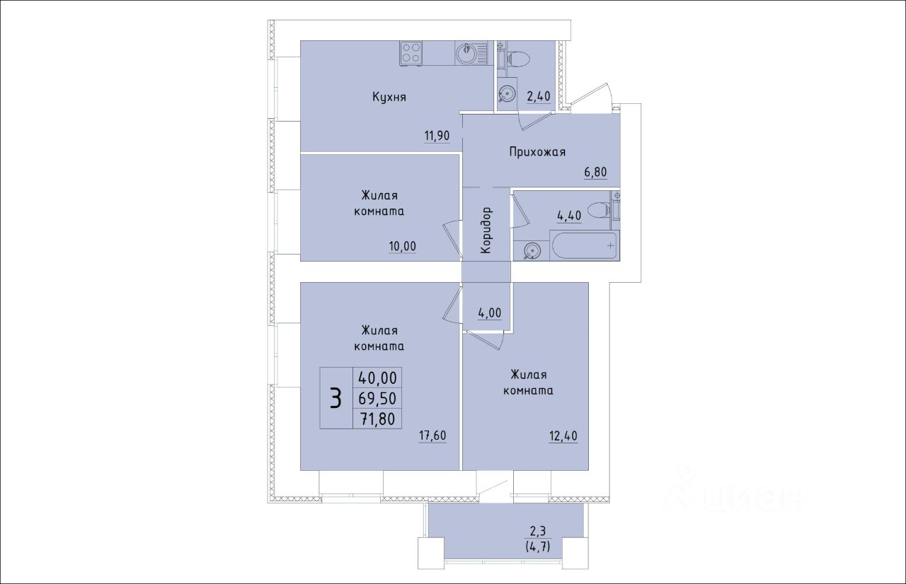 Продаётся 3-комнатная квартира в строящемся доме (Дом 6 (II этап, секция 1)), срок сдачи: IV-кв. 2027, общей площадью 71.8 кв.м., на 3 этаже. Новый жилой комплекс "пр-д Хлебозаводской" от застройщика "Маяковская" расположен по адресу: г.Киров, Хлебозаводской проезд, д.6