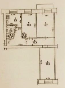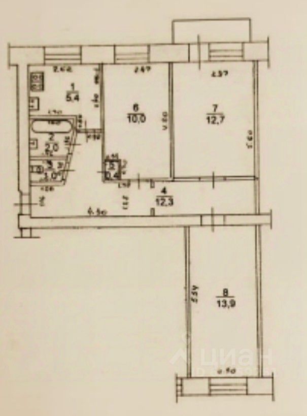 Общая площадь квартиры 57,7 кв.м. + балкон 3 кв.м., не застеклен. Год постройки 1972.