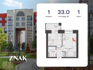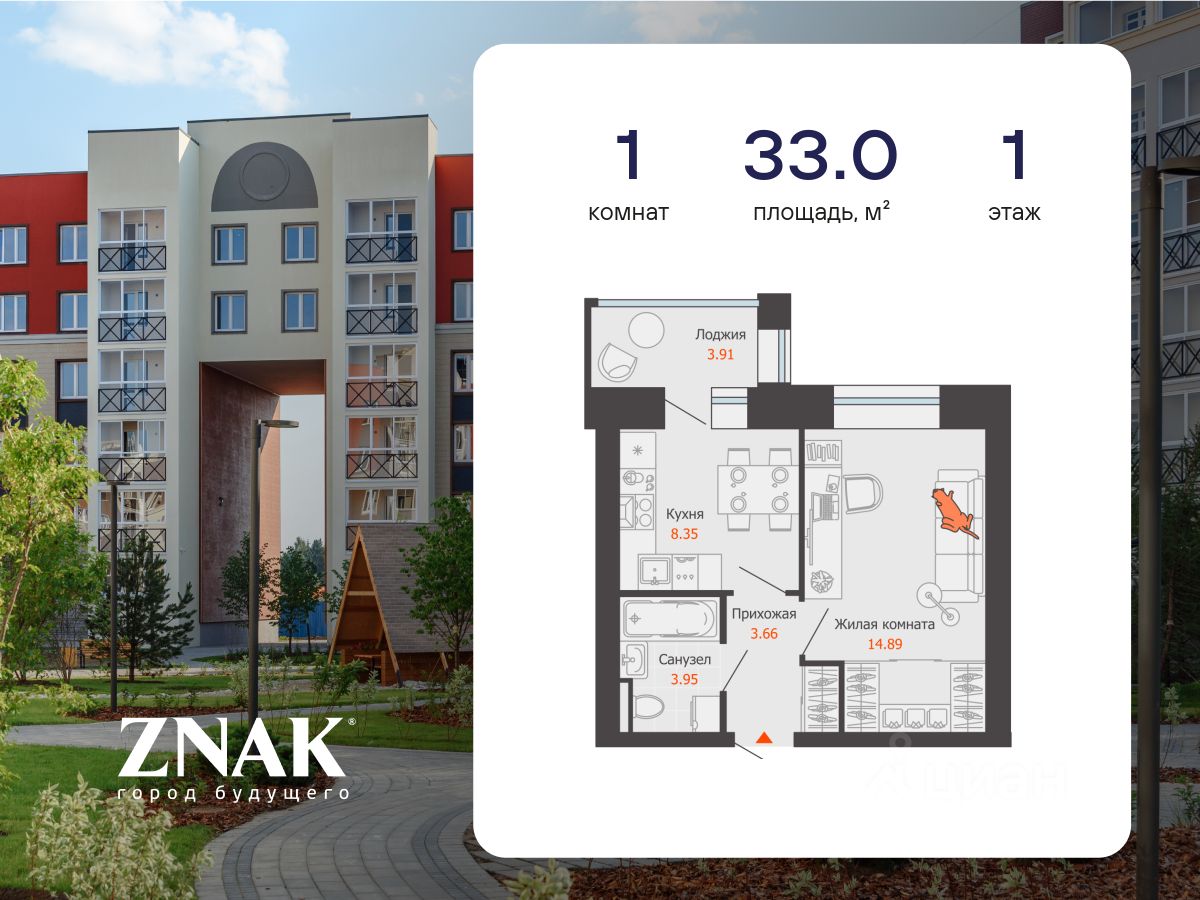 Продается 1-комнатная квартира в 3 км от Зубаревского леса, площадью 33.00 кв. м. Квартира находится в жилом комплексе комфорт-класса ZNAK от девелопера "Железно".