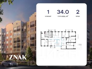 Продается 1-комнатная квартира в 3 км от Зубаревского леса, площадью 34.00 кв. м. Квартира находится в жилом комплексе комфорт-класса ZNAK от девелопера "Железно".
