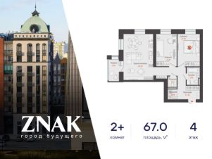Продается 2-комнатная квартира в 3 км от Зубаревского леса, площадью 67.00 кв. м. Квартира находится в жилом комплексе комфорт-класса ZNAK от девелопера "Железно".