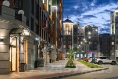 - Трехуровневое освещение и архитектурная подсветка преображает ночной облик всего комплекса.