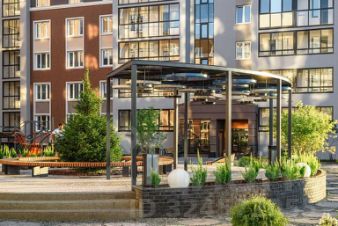 Каждый двор имеет уникальное наполнение: арт-объекты, релакс-зоны для взрослых и многофункциональные нейродинамические площадки для детей разных возрастов. Отдельно располагаются места для спокойного отдыха, паркинги и лужайки для выгула собак.
