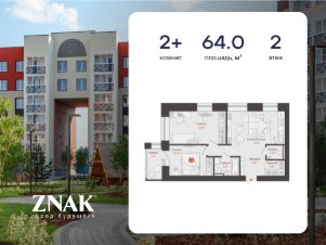 Продается 2-комнатная квартира в 3 км от Зубаревского леса, площадью 64.00 кв. м. Квартира находится в жилом комплексе комфорт-класса ZNAK от девелопера "Железно".